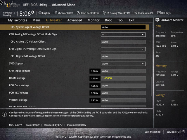 В конечных цифрах это означает 4590 МГц и 2175 МГц соответственно. Задержки устанавливались согласно содержимому XMP, блок Uncore не разгонялся. Для DRAM напряжение составляет 1,65 В, а вот у процессора оно остаётся на отметке Auto.