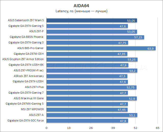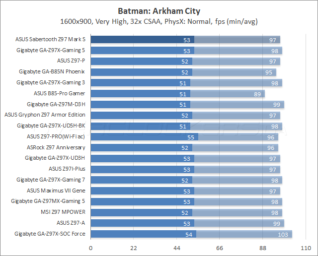 На звание лучшей платы для оверклокинга Sabertooth Z97 Mark S не претендует. В этом нет ничего удивительного, для подобных занятий у производителя существует целый ряд других устройств. Но и здесь набор возможностей заявлен весьма широко. Механизм по стабилизации питающего напряжения ЦП реализован неважно, а при разгоне ОЗУ не получилось добиться максимума, возможно, по тем же причинам. Однако определённых успехов всё же можно достигнуть, а готовые профили помогут в этом новичкам. В ходе испытаний к характеру платы вопросов не возникло, ведь ни разу не пришлось сбрасывать настройки CMOS вручную. Нестабильность выявлялась лишь в ходе изнурительных тестов, и при этом операционная система продолжала работать.