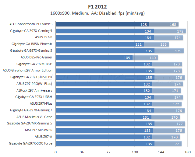 Многочисленные заезды в F1 2012 никак не достигли по своим итогам свойственного всей группе результатов быстродействия. Вероятно, небольшие нюансы в функционировании оперативной памяти всё же имеются у обозреваемой модели. В остальных играх проблем замечено не было.