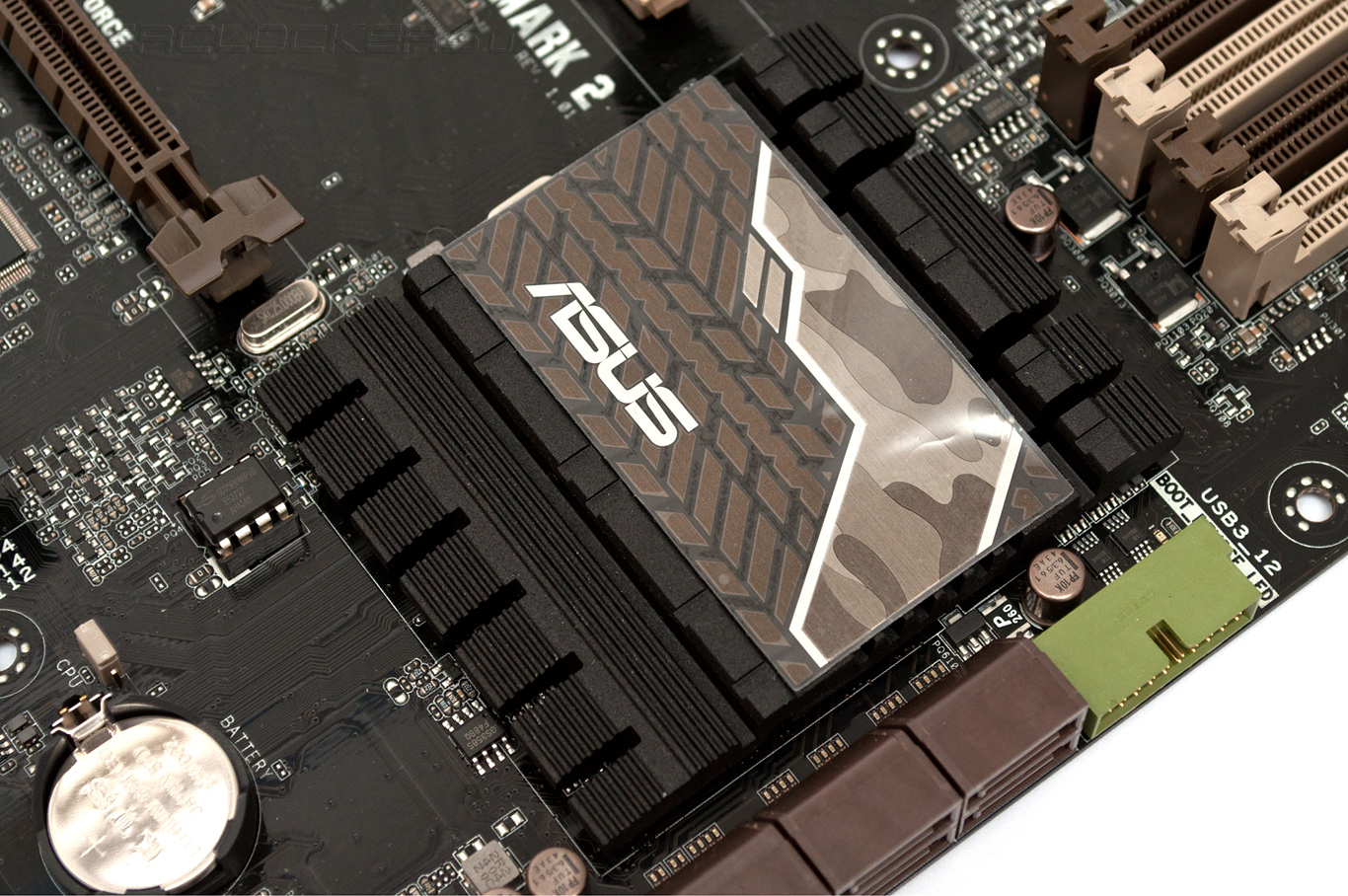 Для отвода тепла от микросхемы системной логики служит небольшой плоский охладитель. К слову, все радиаторы на «материнке» имеют камуфляжную раскраску, которая вносит свой вклад в создание милитаристского стиля Sabertooth Z97 Mark 2.