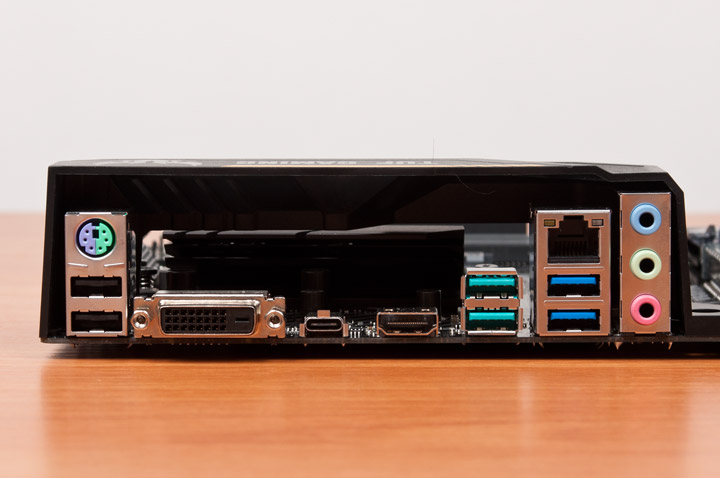 Козырёк над порами ввода-вывода относительно небольшой, как и радиаторы на элементах стабилизатора питания, потому вряд ли возникнут проблемы при монтаже охлаждающих конструкций для ЦП.
