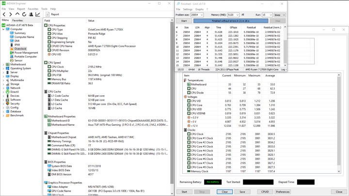 Помимо роста напряжения на модулях ОЗУ, повысился и уровень SOC Voltage — до 1,2 В. Все фирменные технологии ускорения частоты R7 2700X продолжили свою работу. В LinX вновь произошла ситуация как пунктом выше — одна из стадий вычислений оказалась ошибочной. И со стабильностью SOC Voltage есть ряд вопросов, чего с прежними платами не наблюдалось.