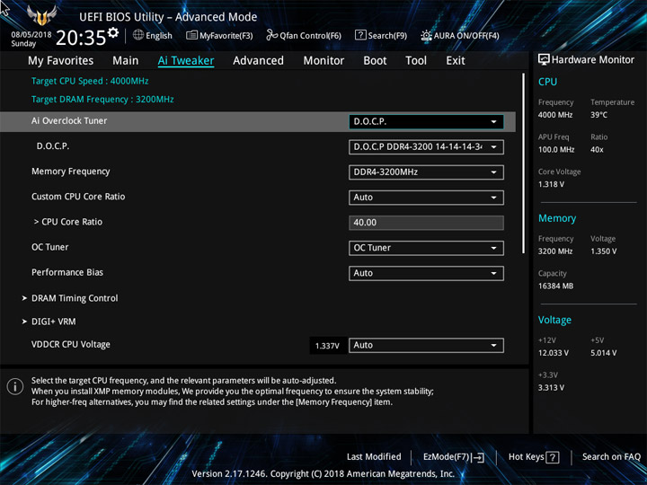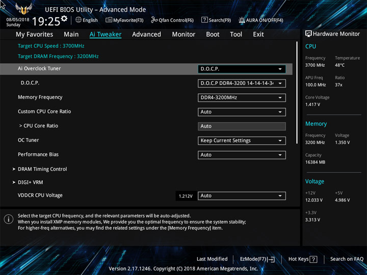 Наиболее простой способ улучшить отзывчивость компьютера — разогнать память, для этого предусмотрен фирменный сценарий D.O.C.P. Тестовый набор заработал на частоте 3200 МГц без какого-либо участия в корректировке настроек.