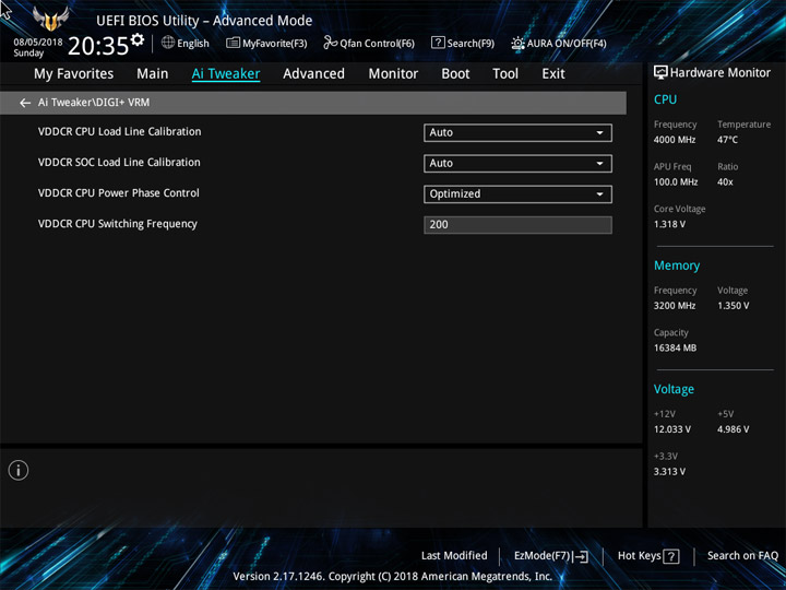 | VDDCR CPU Load Line Calibration | Auto/Regular/Medium/High/Extreme | |