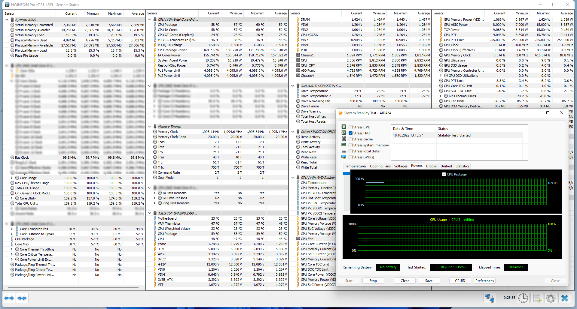 С таким прогревом упала потребляемая мощность до 168–169 Вт, поэтому обязательно нужно позаботиться о каком-либо активном охлаждении зоны VRM, потому что в закрытом корпусе нагрева будет еще больше.