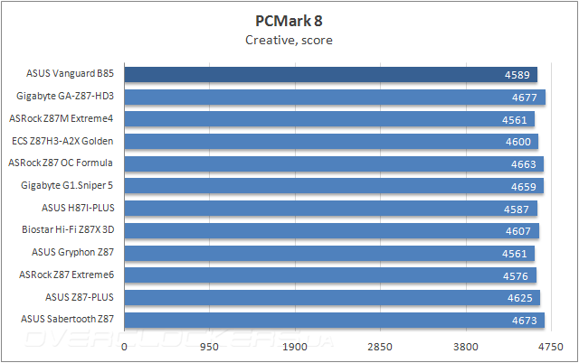 В комплексных сценариях PCMark 8 полученные результаты отнюдь не являются наихудшими по общей группе, благодарить стоит корректно функционирующий Turbo Boost. А вот работа с MS Office в один миг уличает «слабинку» в производительности системы, отодвигая итоговый результат в хвост группы.