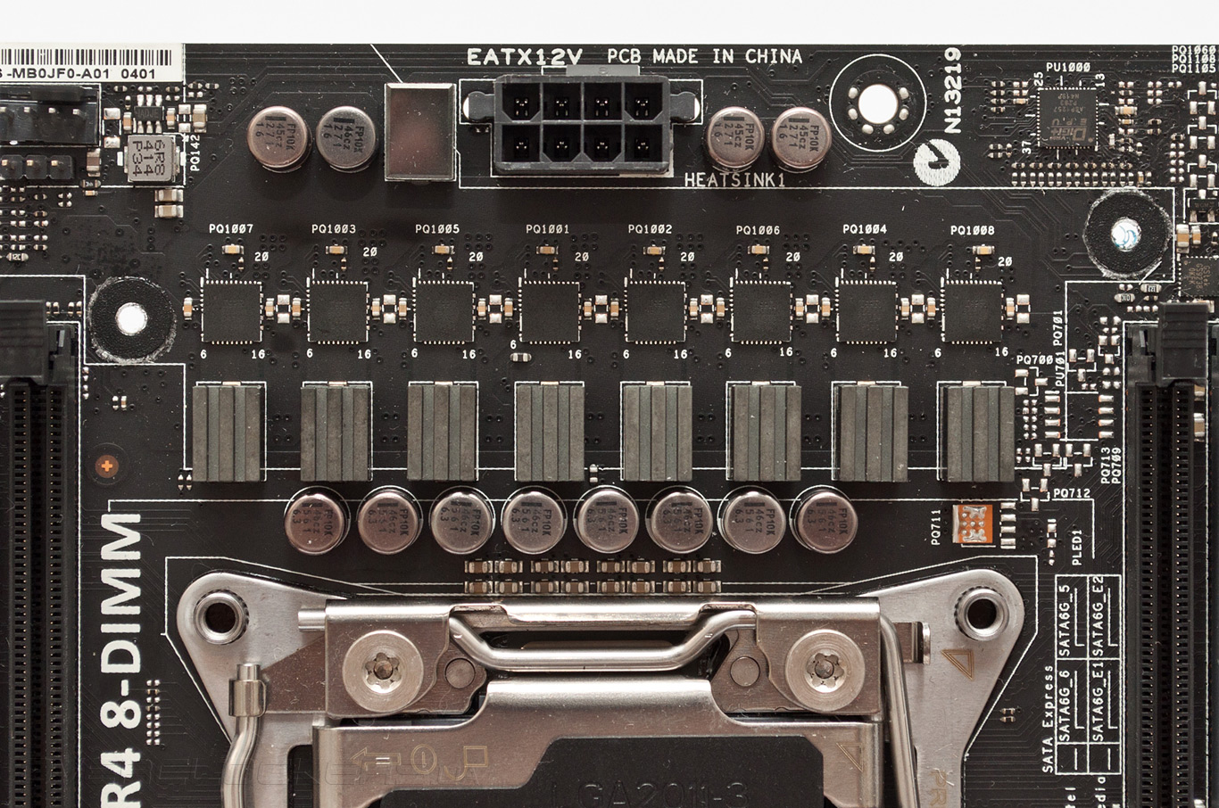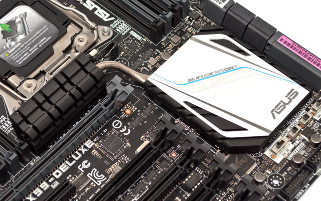 Силовая подсистема ASUS X99-Deluxe спроектирована со значительным запасом прочности, который понадобится при разгоне старших процессоров Intel Haswell-E. Модуль VRM построен по восьмиканальной схеме, в качестве силовых элементов используются интегральные сборки IR33350M производства International Rectifier, дополнительное питание подводится при помощи восьмиконтактного разъема, а за управление преобразователем напряжения отвечает цифровой ШИМ-контроллер DIGI+ VRM ASP1257.
