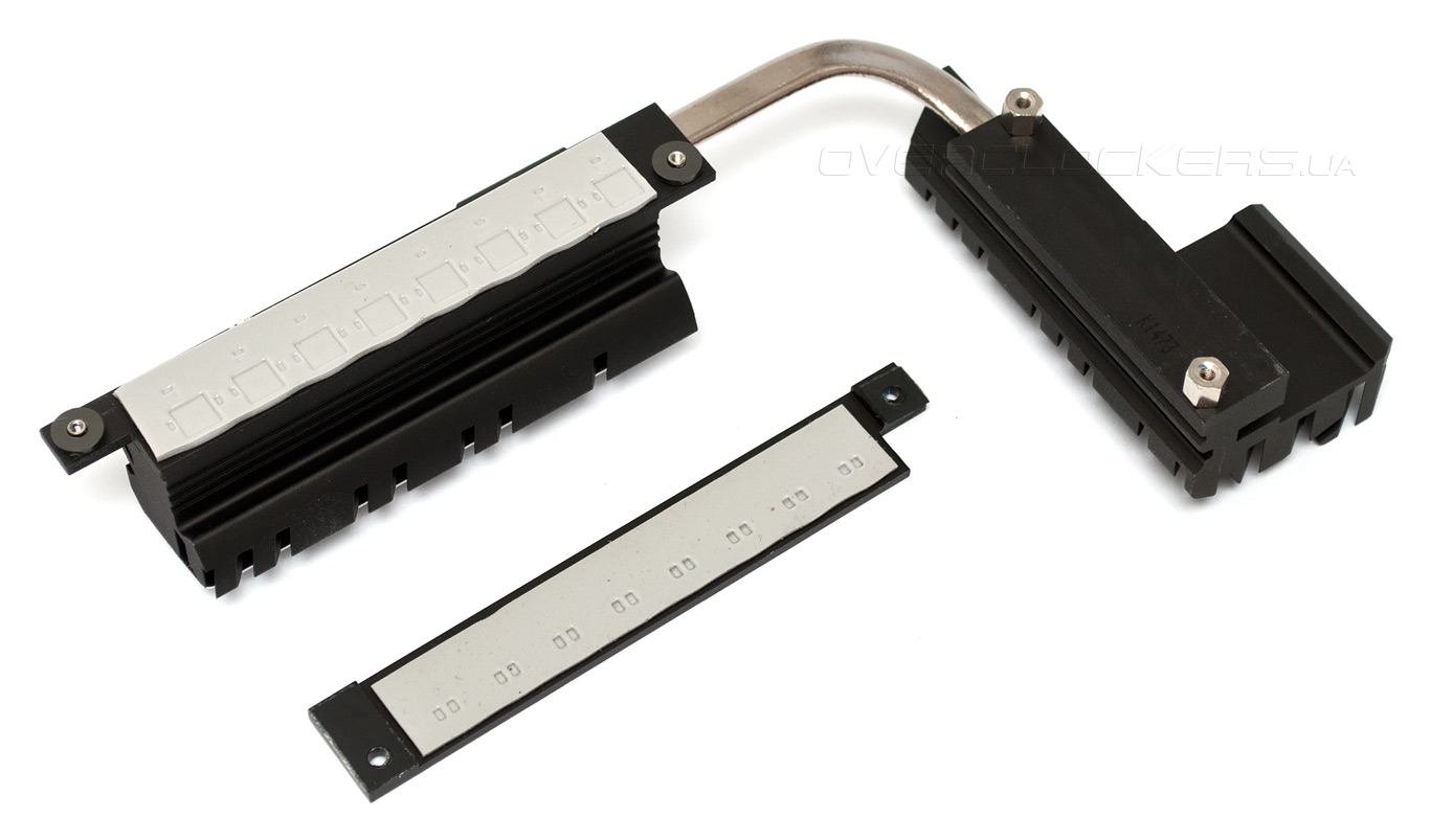 Силовые элементы VRM охлаждаются массивным радиатором, который с помощью тепловой трубки соединен со вторым охладителем, распложённым в районе задней панели.