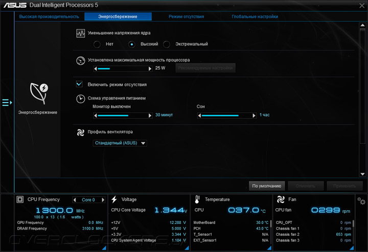 Для снижения энергопотребления можно воспользоваться подпрограммой EPU, которая позволяет уменьшить напряжения, ограничить потребляемую процессором мощность, установить таймауты отключения монитора и перехода в спящий режим.