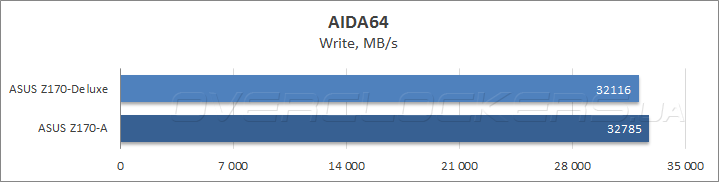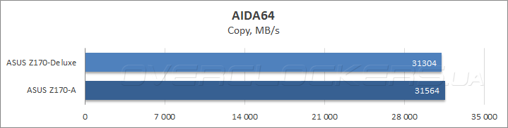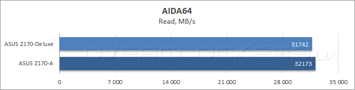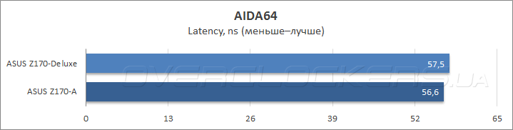 По части скорости работы подсистемы ОЗУ обе системные платы показали практические идентичные результаты, однако, практически во всех подтестах ASUS Z170-Deluxe уступила младшей сестре около 2%, что можно объяснить разными версиями управляющего микрокода.