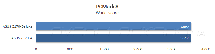 В комплектном бенчмарке Futuremark PCMark 8 участницы сегодняшнего тестирования продемонстрировали одинаковый уровень быстродействия, а значит, при выполнении типичных повседневных задач тестовые стенды на базе этих системных плат покажут идентичную продуктивность.