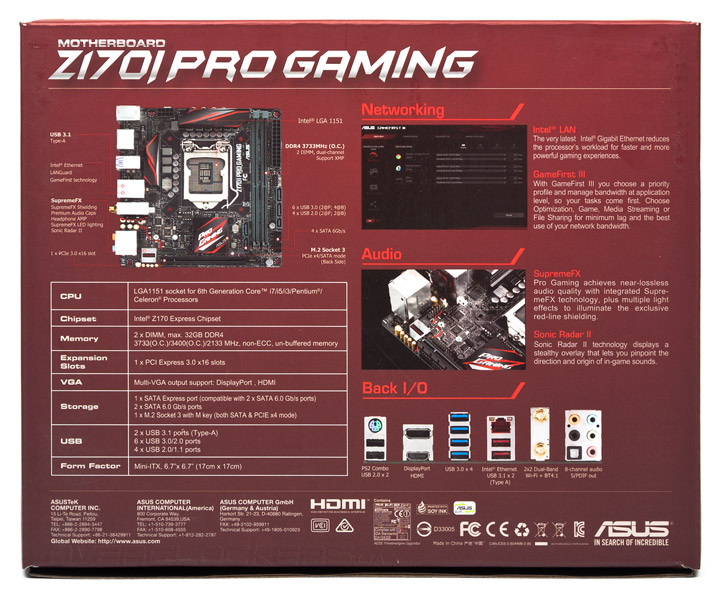 Постепенно ниша компактных ПК находит всё бо́льшее признание у пользователей. Благодаря усилиям чипмейкеров, обилие различных интерфейсов уже не требует множества сторонних контроллеров на поверхности материнской платы. Некогда сборки с привлечением небольших плат рассматривали как основу центра развлечений формата «гостиной», но последние тенденции говорят о полном пересмотре взглядов, особенно, когда на фоне прочих компонентов системы теперь выделяется охлаждение центрального процессора. У энтузиастов важным вопросом является способность малышек работать в экстремальных условиях, то есть — с разгоном ЦП и ОЗУ. На суд публики специалисты ASUS явили плату Z170I Pro Gaming, способной, по задумке, удовлетворить всем таким требованиям, а запрашиваемый ценник заметно меньше, чем у продуктов серии Impact.