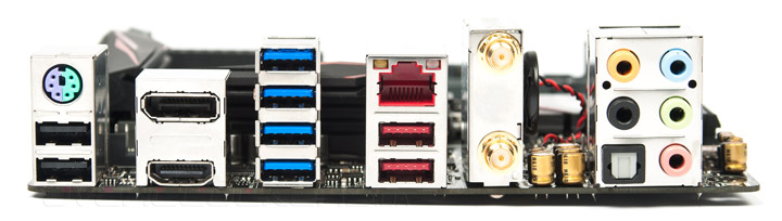 Наполнение задней панели полностью соответствует ожиданиям от современной материнской платы, немного портит всеобщий тренд отсутствие симметричного гнезда USB последнего поколения типа C, есть всего два скоростных стандарта типа A.