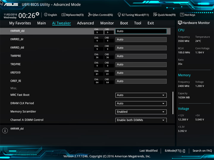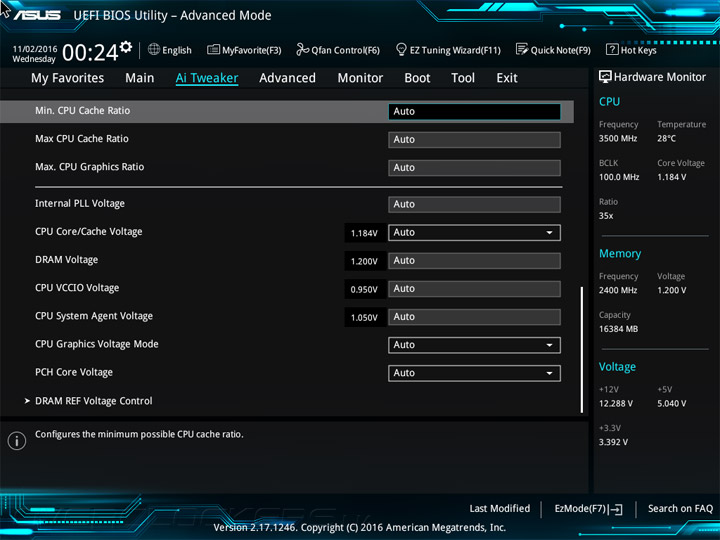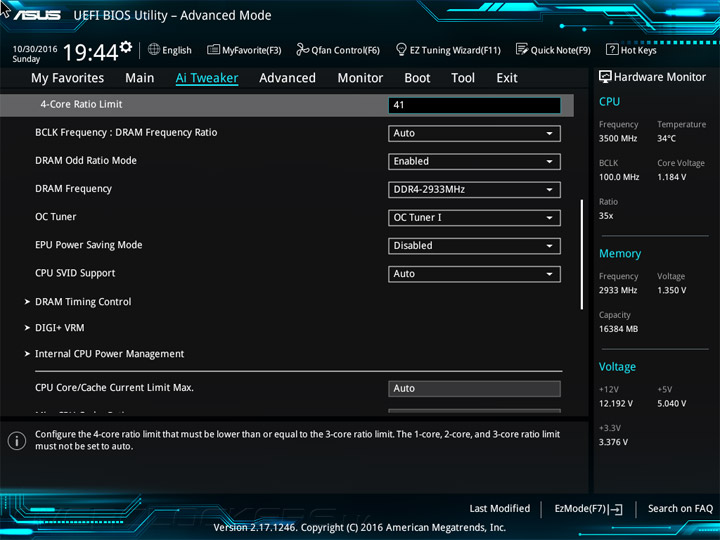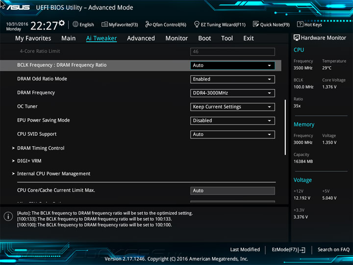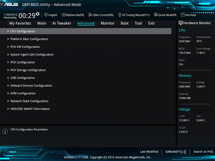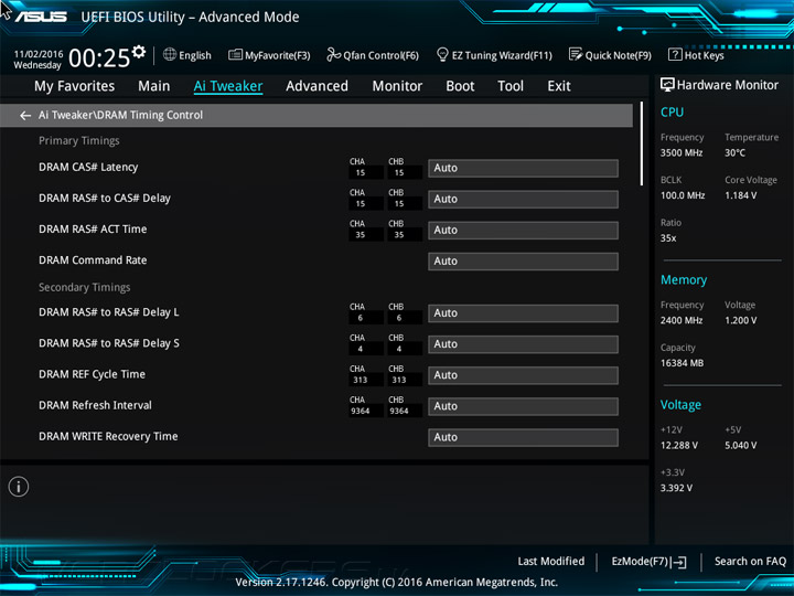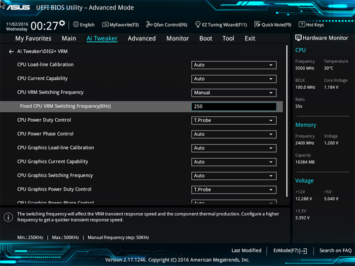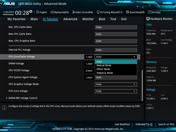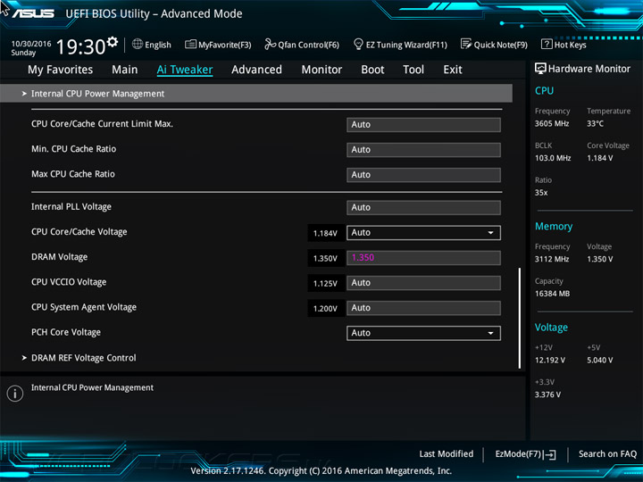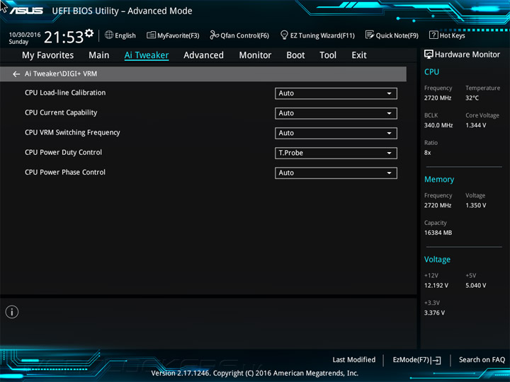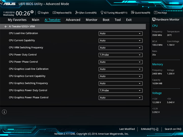 Я не обманулся в ожиданиях, разгонный потенциал у платы чудесно унаследован от ASUS Z170-P D3. ЦП удалось разогнать до максимально возможных отметок «на воздухе», при этом большое количество профилей LLC позволило найти подходящий с приемлемым разбросом от установленного уровня напряжения питания. Нагрев стабилизатора ничуть не изменился, несмотря на переход к памяти типа DDR4. UEFI обладает полным набором настроек для вдумчивой процедуры оверклокинга.