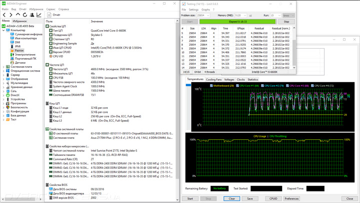 В испытаниях принимал участие инженерный Core i5-6600K, термоинтерфейс под теплораспределителем не заменялся. Разгонный потенциал — хороший.