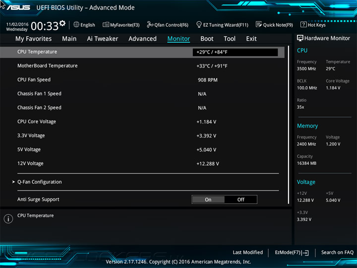 Не очень жалует устройство повышенные частоты для DRAM. Наблюдается рост вторичных напряжений вместе с активацией XMP, при самостоятельном поиске высоких частот их тоже придётся затронуть. Здесь уместно вспомнить о фактическом отсутствии каких-либо помощников, проявляющих себя в трудные минуты поиска стабильности. Опираться можно будет, разве что, на зуммер. Мониторинг напряжений очень скромный, наблюдать можно лишь за процессорным. В остальных случаях нужно будет просто довериться проведённым установкам системы. Готовые профили по разгону оказались слабо приспособленными под нагрузки высокого уровня.