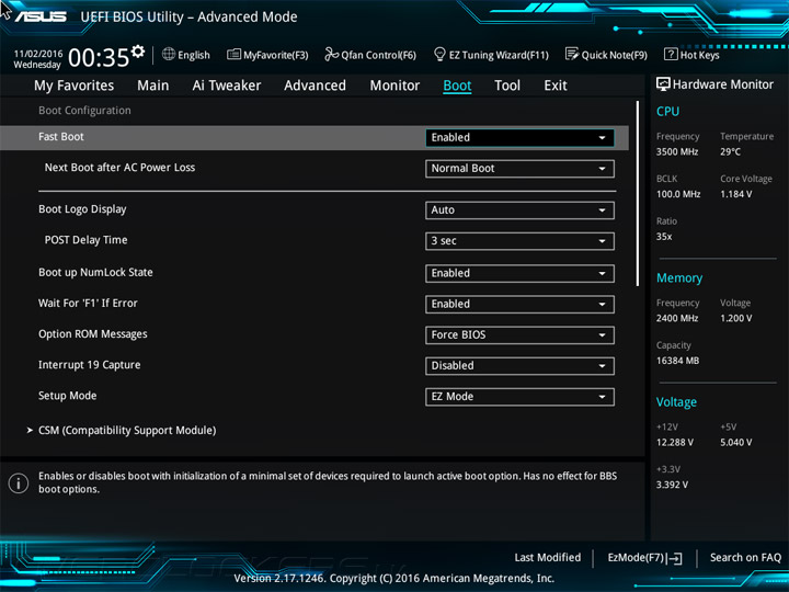 На странице Boot можно, помимо прочего, поменять стартовый режим отображения меню UEFI.