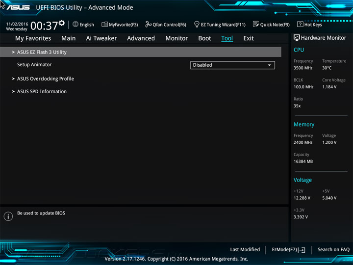 Наиболее свежий микрокод успешно интегрировался посредством EZ Flash перед началом тестирования.