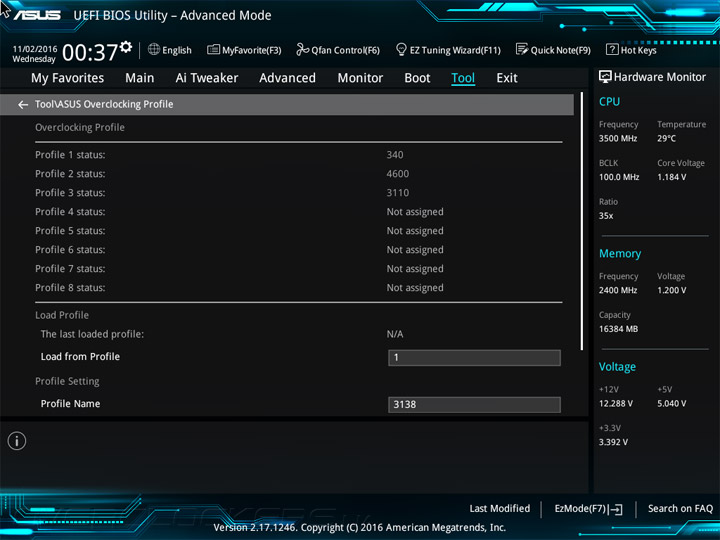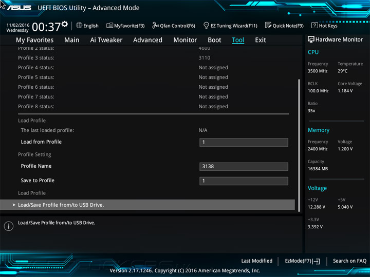 Среди вспомогательного инструментария из полезного обнаруживаются восемь профилей для сохранения настроек системы.