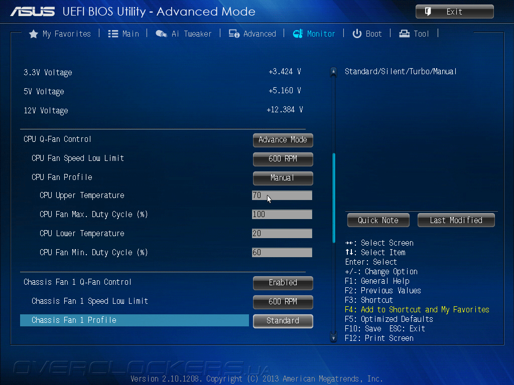 Мониторинг наиболее важных температур, напряжений и оборотов вентиляторов осуществляется в Monitor.