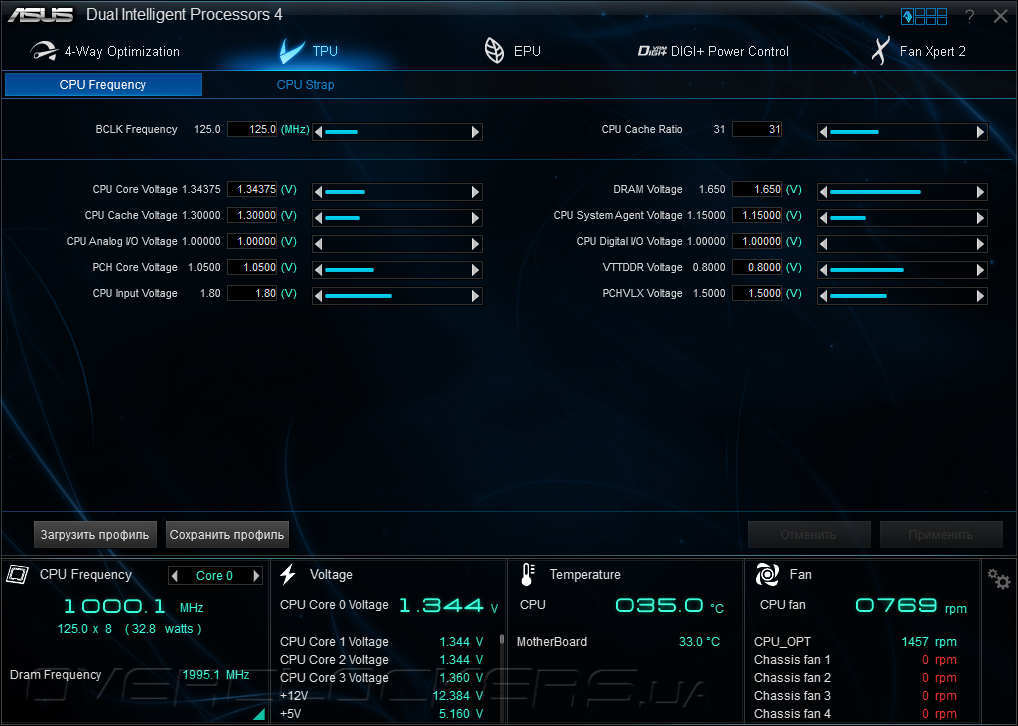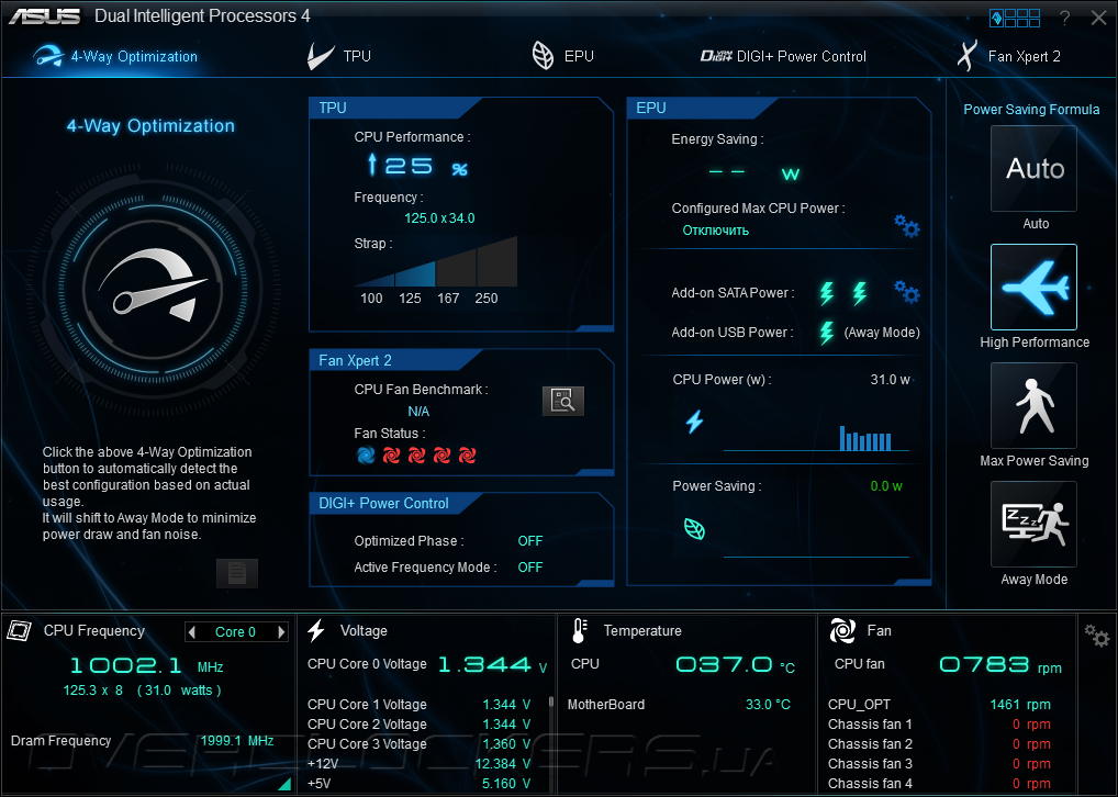 Оптимизация баланса энергосберегающих технологий и производительности системы находится в разделе 4-Way Optimization. Есть возможность автоматической настройки в соответствии с установленным в системе оборудованием.