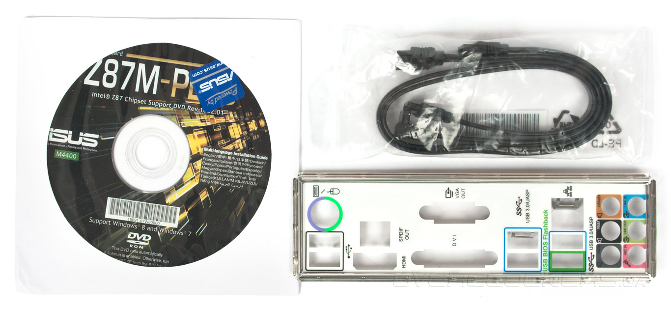 На тестирование плата попала в обычной белой коробке. Полноценная упаковка ничем особым удивить не сможет. На официальной странице продукта можно ознакомиться со всеми особенностями Z87M-Plus, на которые акцентирует внимание производитель для повышения привлекательности своих решений. Хочется отметить технологию USB BIOS Flashback. Этот механизм позволит в случае неприятностей с прошивкой обновить её без визита в сервисный центр.