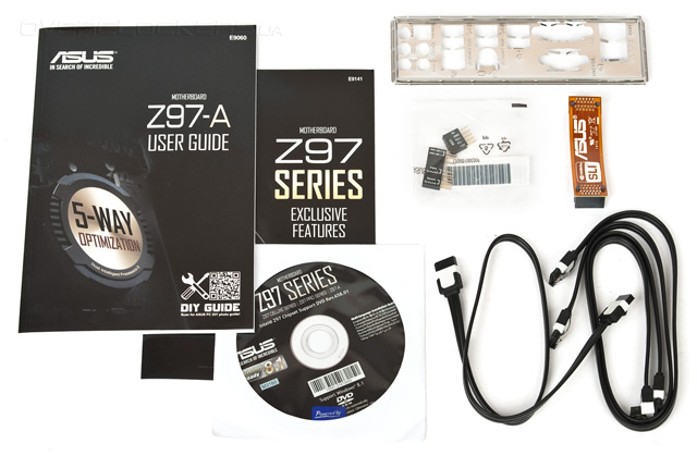 Немногим более интересный комплект поставки по сравнению с более дешёвыми изделиями, к слову, совпадающий с набором некогда побывавшей на тестировании Z87-Plus. Единственное замечание вызывает отсутствие в комплекте крепёжного винта для закрепления устройств, подключаемых к гнезду M.2. Возможно, он будет находиться в комплекте поставки последних.