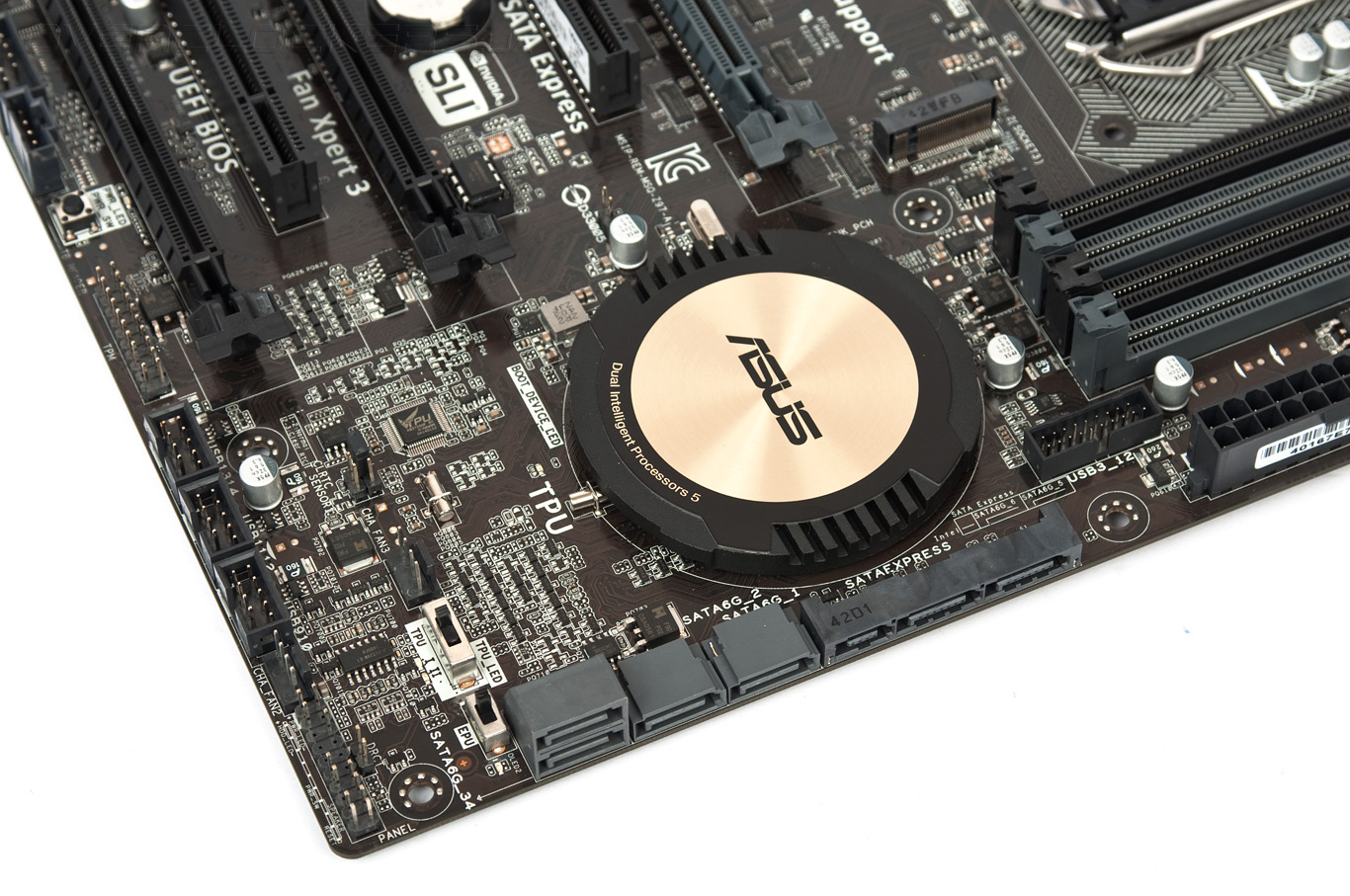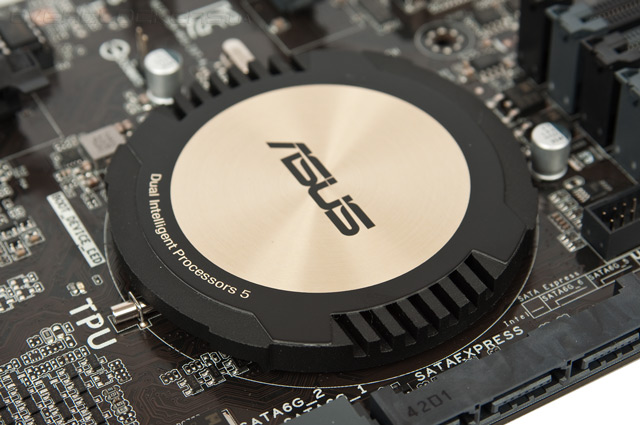 Он представляет собой массивный брусок, изготовленный из легкосплавного материала. На нём решили подчеркнуть развитие фирменного решения Dual Intelligent Processors вот уже до пятого поколения. Площадь его явно не будет вызывать вопросов касаемо температуры «южного моста».