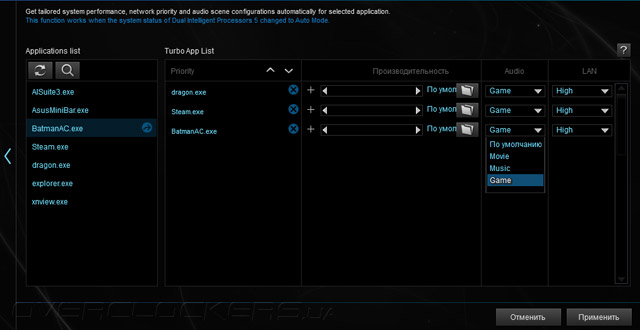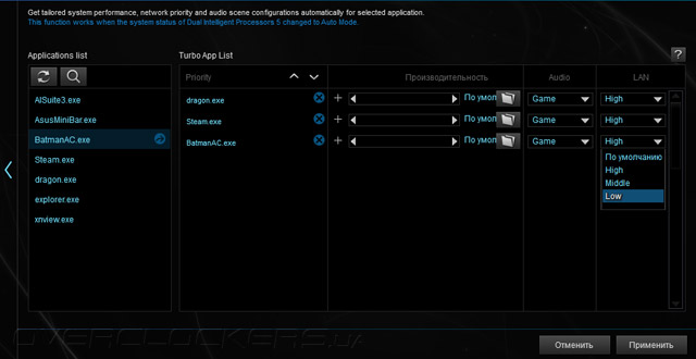 Собственно, нет ничего удивительно в том, что и поныне компания ASUS является пионером в сфере освоения разнообразных граней симбиоза аппаратной и программной составляющих собственной продукции. Новый модуль Turbo App являет собой вовсе не очередную бесполезную утилиту, число которых у некоторых вендоров доходит порой до неприличного, а становится в плотный ряд прочих, уже проверенных в деле программ, образуя своеобразное связующее звено между ними. За это разработчики заслуживают исключительно похвалы.