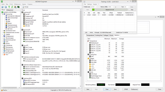 При активации профиля XMP у стендового комплекта оперативной памяти, по всей видимости, происходит прямое вмешательство в работу технологии Turbo Boost (относительно штатных установок). В результате Core i5-4670K функционировал на частоте 3,8 ГГц вне зависимости от типа запускаемых приложений.