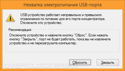 Неожиданно возникли проблемы при разгоне ЦП с использованием уже проверенных прежде установок. Буквально на первой минуте прохождения стресс-тестирования операционная система начинала сообщать о нехватке электропитания на некоем устройстве USB, в результате чего оно отлучалось от использования.