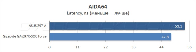 Как оказалось, Z97-A в полной мере унаследовала характер продуктов от ASUS, базирующихся на Intel Z87. Латентность памяти оказывается несколько выше конкурирующей продукции, во всём остальном с подсистемой памяти всё в порядке.