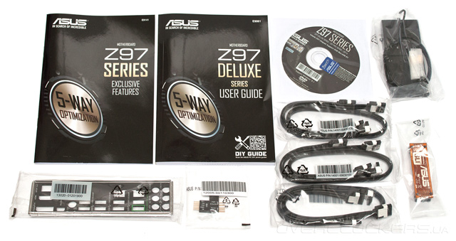 Набор аксессуаров, поставляемый вместе с ASUS Z97-Deluxe состоит из: