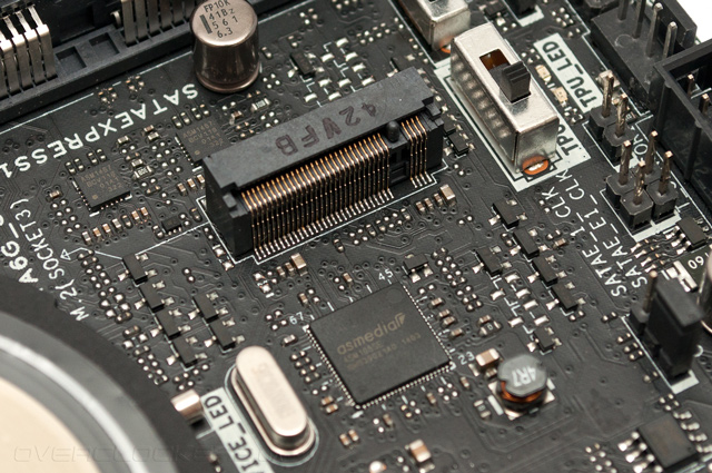 Также ASUS Z97-Deluxe оснащена разъемом M.2 «тип 3» с пропускной способностью 10 Гбит/с для установки твердотельных накопителей в миниатюрном форм-факторе NGFF2260/2280, правда, при его работе отключается чипсетный порт SATA Express.