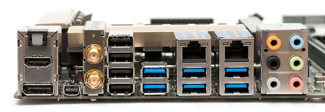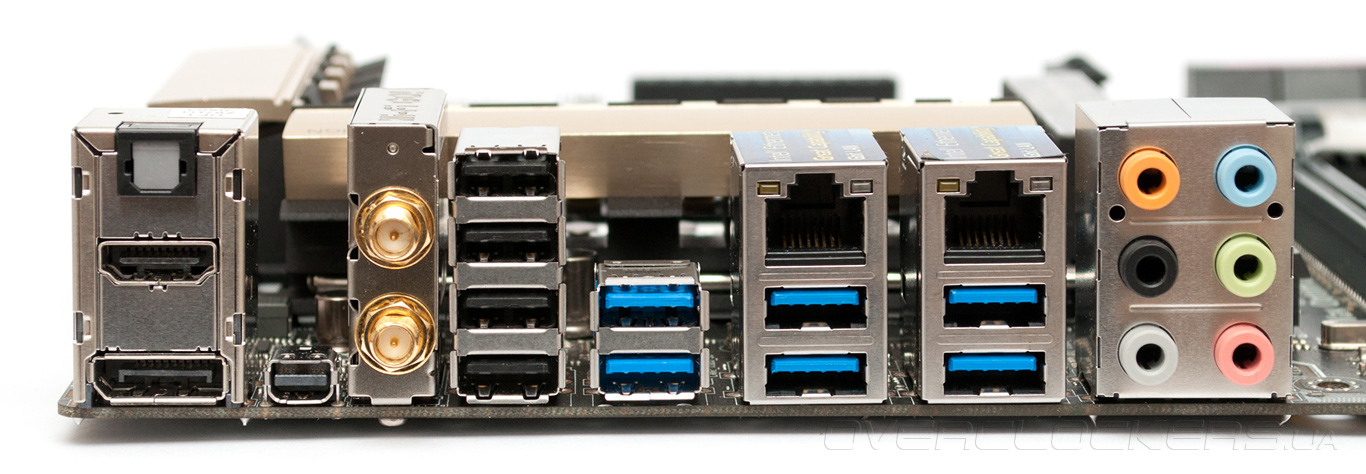 В итоге, на задней панели ASUS Z97-Deluxe нашлось место для: