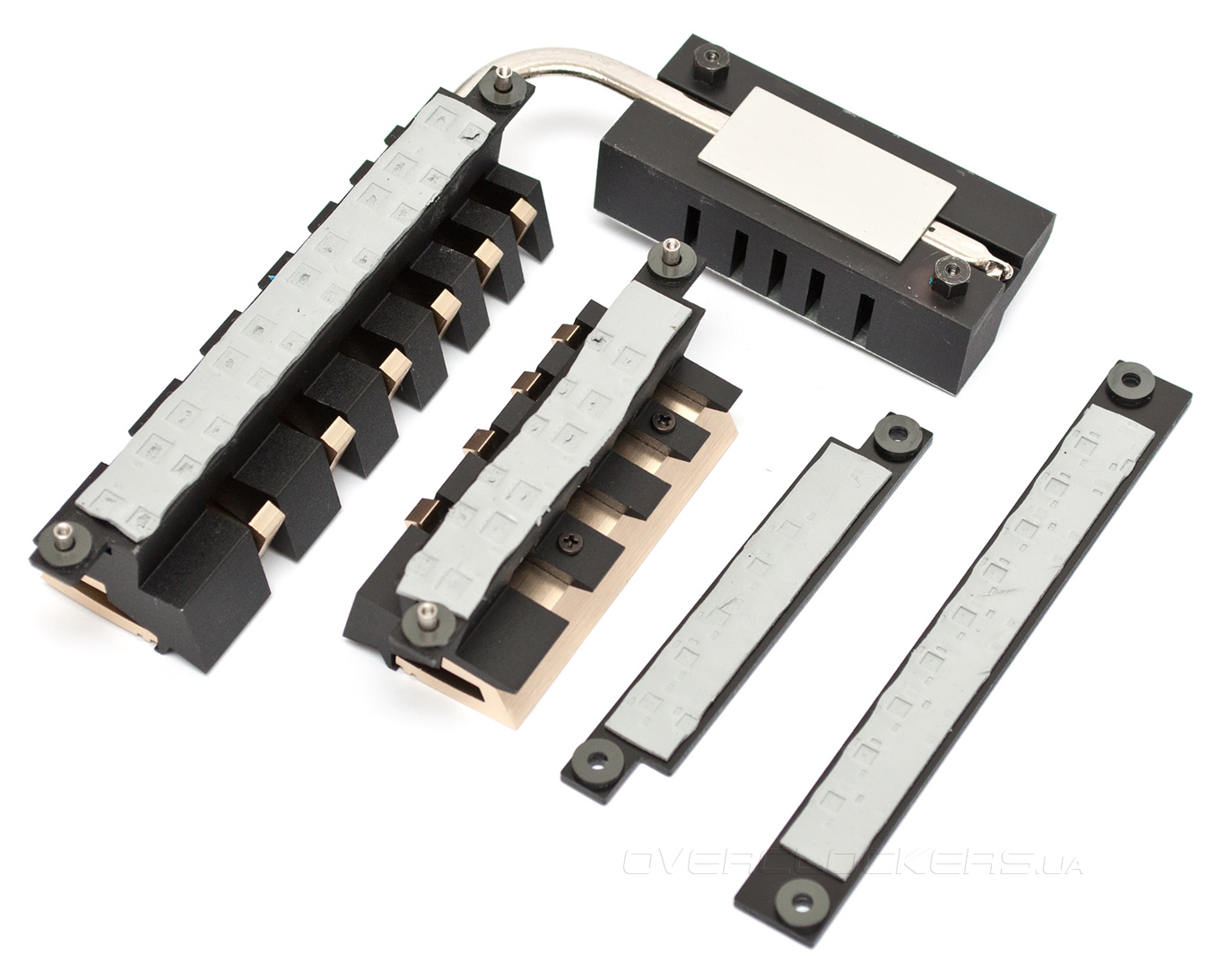 Все элементы системы охлаждения имеют надежное винтовое крепление, для обеспечения достаточного усилия прижима с обратной стороны печатной платы есть металлические усилительные пластины, а в качестве термоинтерфейса используется привычная «терможвачка».