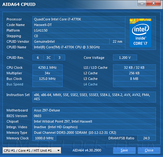 - процессор: Intel Core i7-4770K (3,5 ГГц, 8 Мбайт кэш L3);