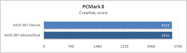 При тестировании в комплексном бенчмарке Futuremark PCMark 8, который довольно точно отражает быстродействие систем при выполнении повседневных прикладных задач, явного победителя нет, обе участницы показали похожую продуктивность.