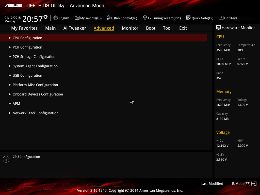 В основе прошивки ASUS Z97-Pro Gamer лежит управляющий микрокод UEFI разработки компании AMI. Интерфейс меню настройки имеет два режима: упрощенный EZ Mode и продвинутый Advanced Mode. В первом случае пользователям доступны лишь самые основные опции, такие как отображение режима работы основных компонентов, вывод показаний системного мониторинга, установка даты и времени, управление работой вентиляторов, активация профилей X.M.P. для модулей ОЗУ, а также выбор порядка инициализации загрузочных устройств.