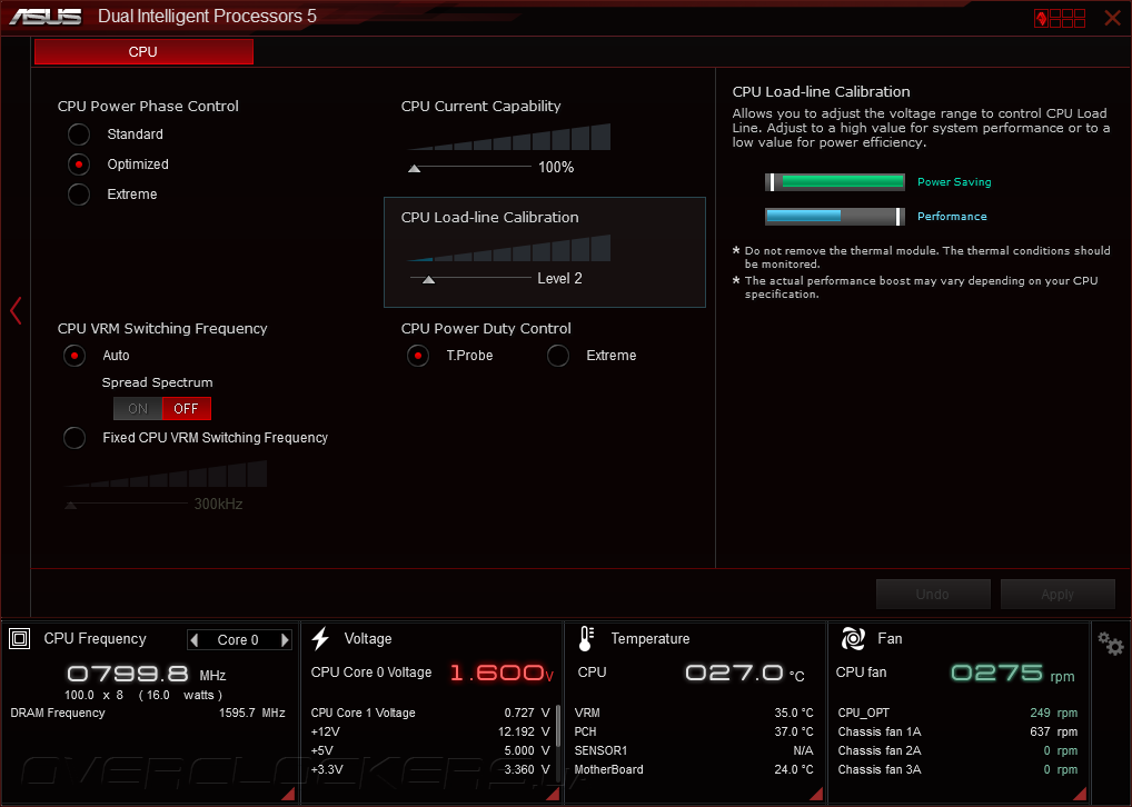 Для настройки цифровой подсистемы питания служит модуль DIGI+ VRM, который отвечает за регулировку частоты переключения силовых элементов, отключение неиспользуемых фаз VRM в простое и управление опцией CPU Load-line Calibration.