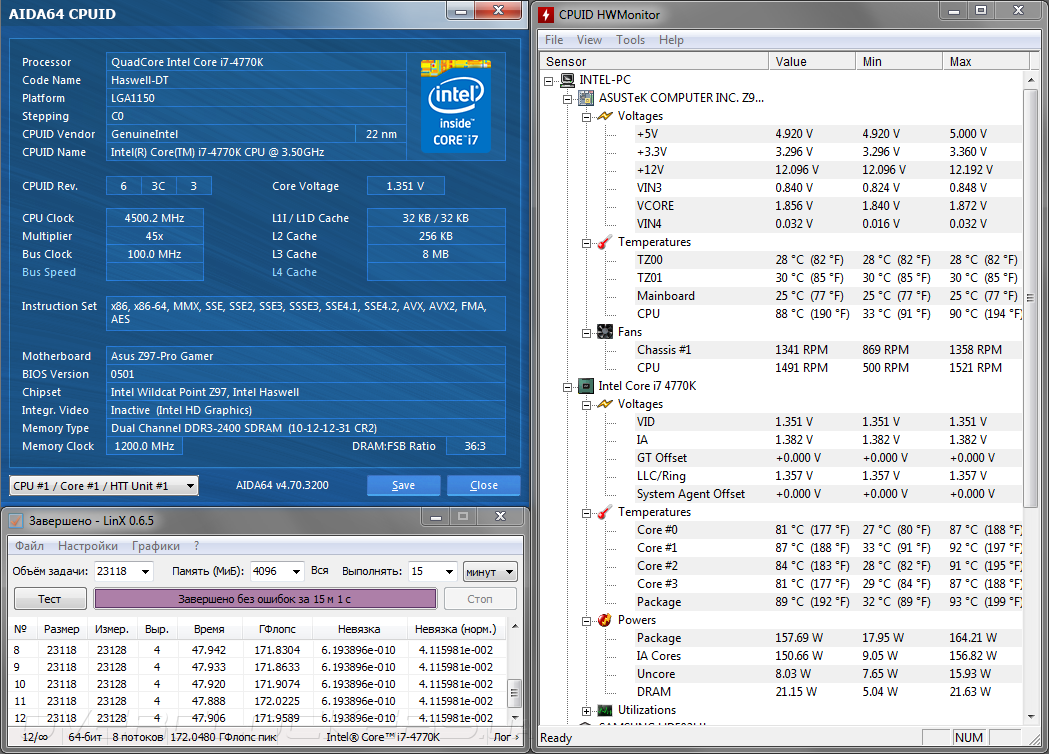 - процессор: Intel Core i7-4770K (3,5 ГГц, 8 Мбайт кэш L3);