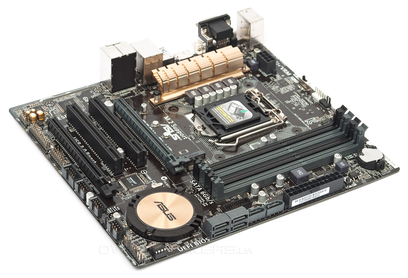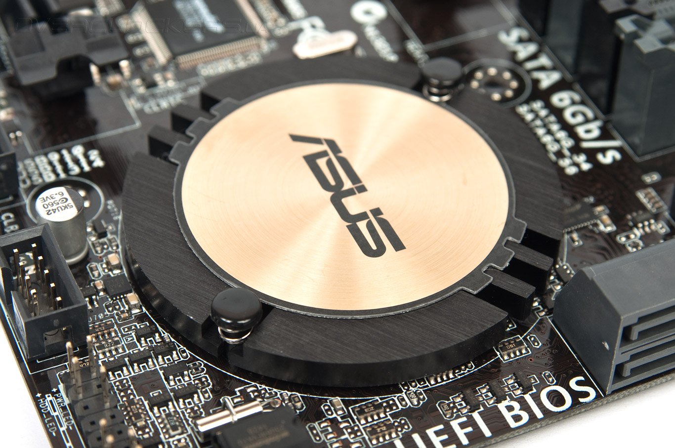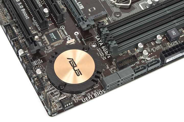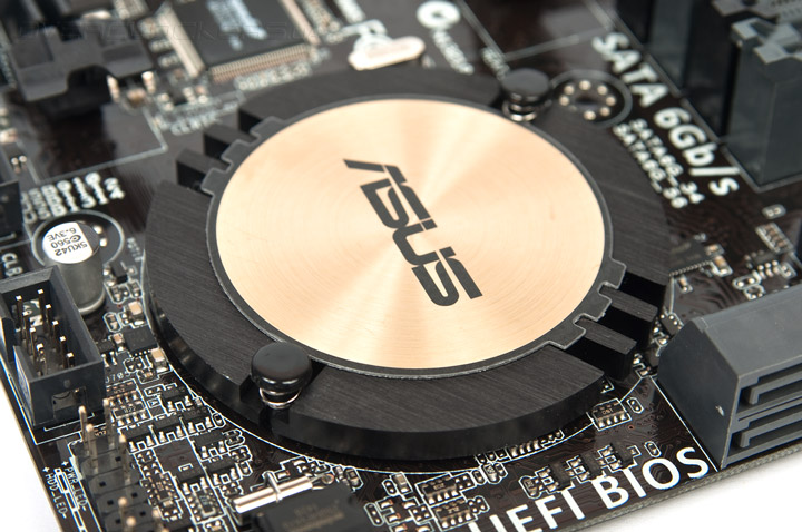 Охладитель системной логики выполнен в свойственной манере для всех плат ASUS последнего поколения, он имеет округлые формы. Его полностью достаточно для возложенных на него обязанностей.