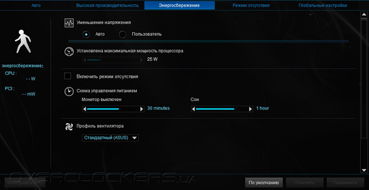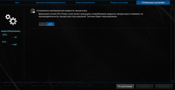 Роль мастера по настройке системы предоставлена набору Performance and Power Saving Utilities. По своей сути, это доступ к настройкам, сосредоточенных в UEFI, а для модуля EPU ещё открывается часть из настроек операционной системы по работе ПК в ждущих и спящих режимах. Подобным набором оснащены все простые изделия от ASUS, та же Z97-P входит в это число. Более дорогие изделия, куда можно отнести Z97-A, обладают единым мастером 5-Way Optimization, из отсутствующих здесь модулей там наличествует TurboApp.