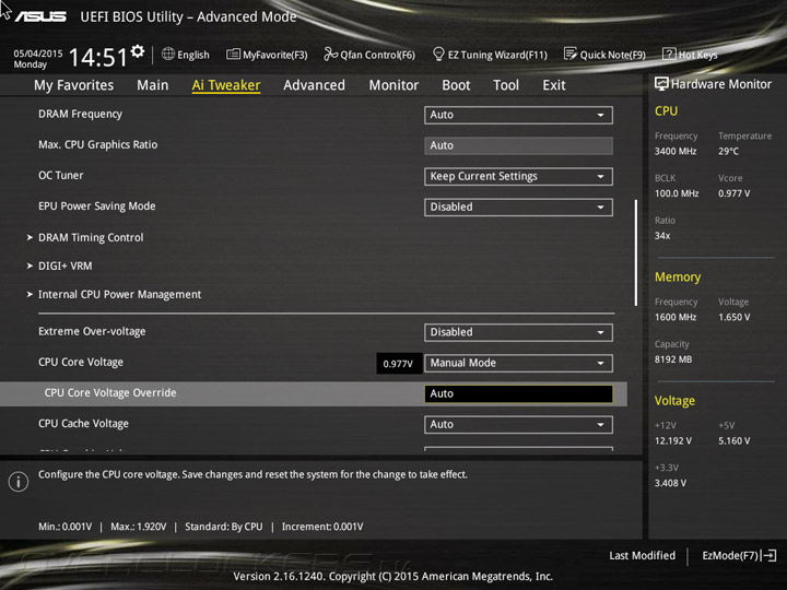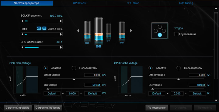 | CPU Core Voltage Override (В) | 0,001–1,92 | 0,001 |