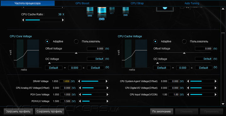 | CPU Cache Voltage Override (В) | 0,001–1,92 | 0,001 |