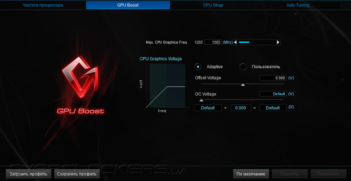 | CPU Graphics Voltage Override (В) | 0,001–1,92 | 0,001 |