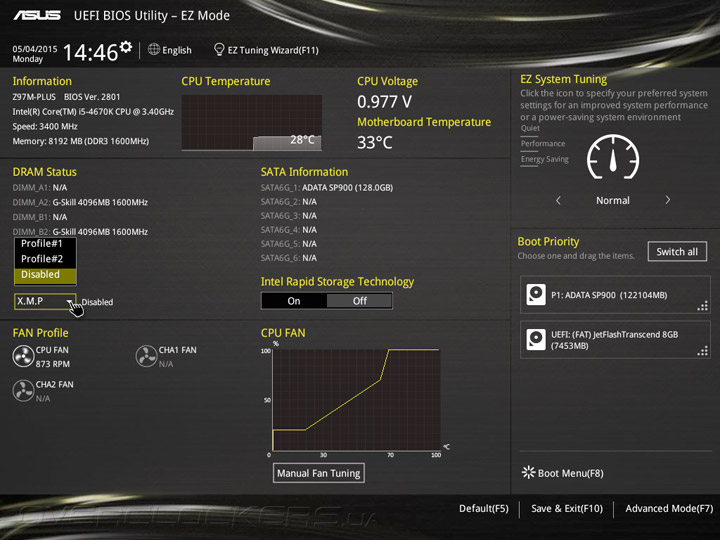 На замыкающих страничках ничего интересного на нашлось. Раздел Boot обладает традиционным набором параметров, ответственных за процедуру инициализации оборудования, POST отрабатывает процедуру достаточно быстро и без вмешательства в них. Среди утилит есть традиционный просмотрщик содержимого профилей SPD и XMP, средство EZ Flash, успешно прошедшее проверку, и ещё здесь предусмотрели механизм по сохранению настроек, всего доступно восемь слотов.