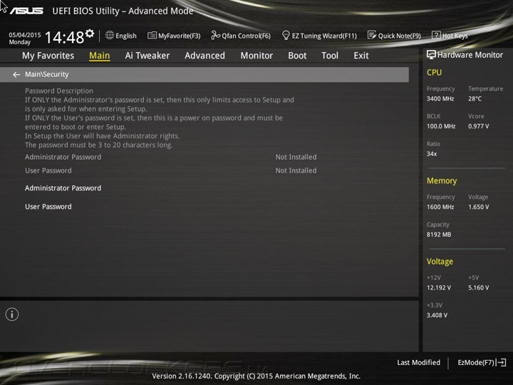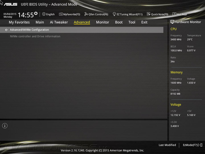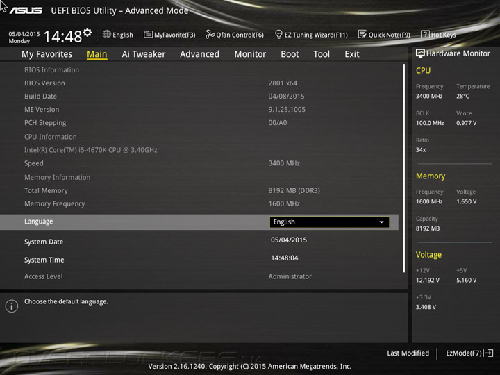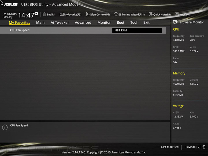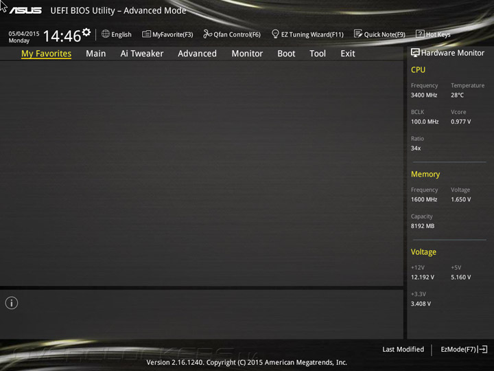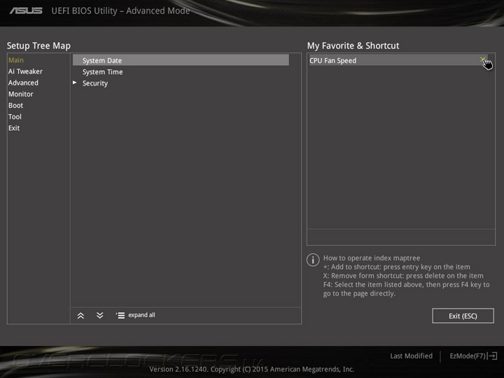 Advanced Mode возглавляет страница My Favorites, где можно сконцентрировать часть из часто используемых настроек для удобного доступа к ним. Следующая страница Main позволит получить информацию об используемых компонентах, а также ограничить доступ к настройкам системы.