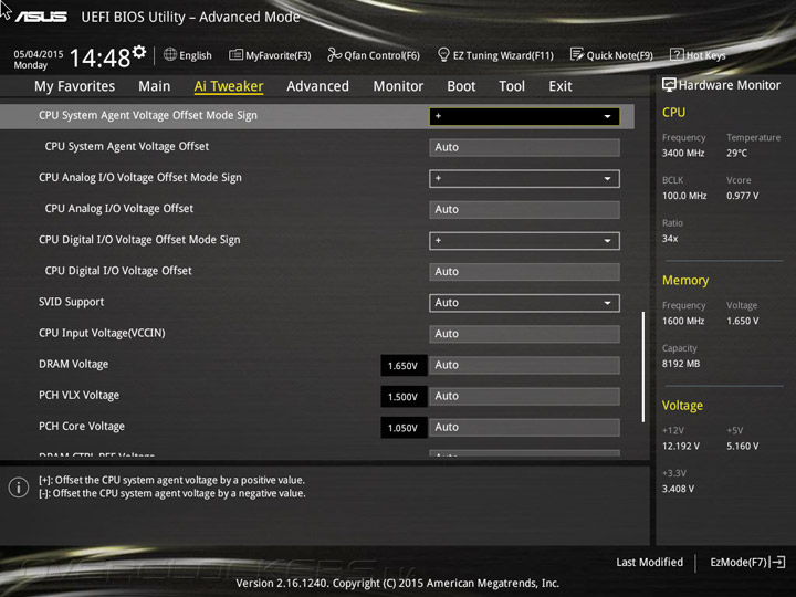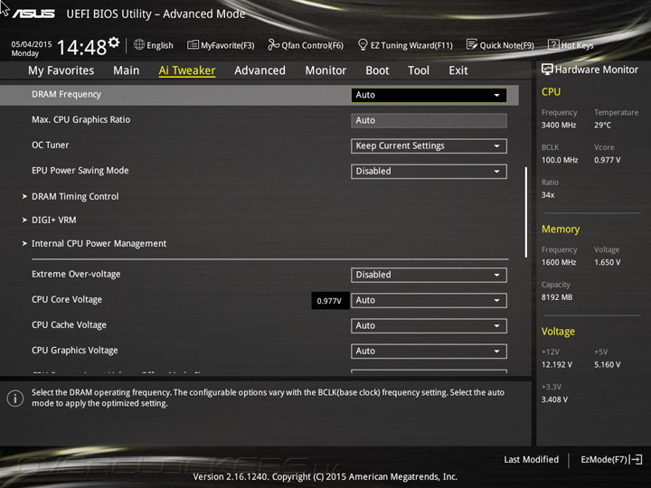 Весь набор механизмов для тонкой настройки системы, в том числе — для проведения разгона, находится на странице Ai Tweaker. Состав повторяет возможности многих системных плат, в том числе и намного более дорогих, поэтому UEFI точно не выступит ограничителем в раскрытии разгонных возможностей компонентов системы.