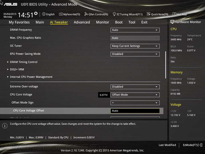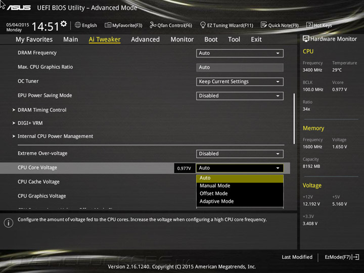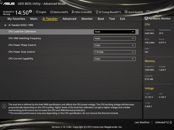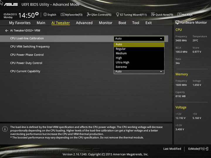 | CPU Load-line Calibration (%) | Auto/Regular/Medium/High/Ultra High/Extreme | 25 |